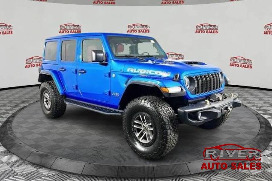 2024 Jeep Wrangler Rubicon 392, Hydro Blue Pearl Coat Sky One Touch Power Top, Warn Winch, Upgraded Hydro Blue Pearl, Heated Front Seats, Apple Carplay, Blind Spot System, Park Assist, Off Road Plus Mode, Hood Air Intake Scoops, 35 Inch Tire Rubicon 392 Suspension. 2024 Jeep Wrangler Rubicon 392 4x4, featuring a stunning Hydro Blue Pearl exterior and luxurious Nappa Leather interior. This vehicle is ready to take you on your next journey. Performance Under the hood, the Rubicon 392 is powered by a robust 6.4-liter HEMI V8 engine, delivering 470 horsepower and 470 lb-ft of torque. This impressive powertrain, paired with an 8-speed automatic transmission and advanced four-wheel-drive system, ensures thrilling performance both on and off the road. The added Warn Winch enhances its off-road capability, making it perfect for rugged terrains. Design The Wrangler's bold design features an iconic seven-slot grille and high ground clearance, making it instantly recognizable. The Hydro Blue Pearl finish gives it a vibrant and dynamic look, while the Nappa Leather interior provides a touch of sophistication. With ample interior space and rugged yet stylish materials, this Jeep is as practical as it is eye-catching. Technology Equipped with the latest Uconnect infotainment system, this Wrangler offers a large touchscreen display, navigation, and smartphone integration with Apple CarPlay and Android Auto. Stay connected and entertained while enjoying the open air with the innovative Sky One Touch Power Top, allowing you to open the roof effortlessly at a moments notice. Advanced Safety Features Your safety is prioritized with advanced features such as adaptive cruise control, blind-spot monitoring, and a rearview camera. These technologies work together to enhance your driving experience and provide confidence on every adventure. Convenience and Comfort Inside, will find heated front seats and a multifunction steering wheel that elevate your driving comfort. The spacious rear seating area ensures that both passengers and cargo have plenty of room, making every journey enjoyable.