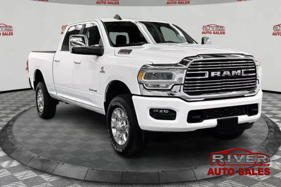 2024 RAM 2500 Laramie Crew Cab 4x4 6'4' Box, Turbodiesel, Four Wheel Drive, Laramie Level 1 Equipment Group, Heated and Cooled Leather Front Bench Seat, Remote Start, Blind Spot Detection, Alpine Premium Audio, Apple CarPlay/Android Auto, 2500 Laramie 4x4 - Turbodiesel - Heated/Cooled Leather, 4D Crew Cab, Cummins 6.7L I6 Turbodiesel, 4WD, Bright White Clearcoat, 10 Speakers, 115V Auxiliary Rear Power Outlet, 12" Touchscreen Display, 2 Way Rear Headrest Seat, 220 Amp Alternator, 2nd Row In Floor Storage Bins, 3.73 Axle Ratio, 4 Way Front Headrests, 4G LTE Wi-Fi Hot Spot, Active Noise Control System, Air Conditioning, Alexa Built-In, AM/FM radio: SiriusXM with 360L, Apple CarPlay/Android Auto, Auto Adjust In Reverse Exterior Mirrors, Auto Dim Exterior Mirror, Auto High Beam Headlamp Control, Auto Power-Folding Mirrors, Auto-Dimming Exterior Passenger Mirror, Automatic temperature control, Blind Spot & Cross Path Detection, Bumpers: body-color, Center Hub, Chrome Exterior Mirrors, Compass, Delay-off headlights, Diesel Exhaust Brake, Dual 730 Amp Maintenance Free Batteries, Electronically Controlled Throttle, Exterior Mirrors Courtesy Lamps, Exterior Mirrors w/Heating Element, Exterior Mirrors w/Memory, Exterior Mirrors w/Supplemental Signals, Forward & Reverse Utility Lights, Front Center Armrest w/Storage, Front dual zone A/C, Front LED Fog Lamps, Fully automatic headlights, Garage door transmitter, Global Telematics Box Module (TBM), GPS Antenna Input, HD Radio, Heated door mirrors, Heated Front Seats, Heated Steering Wheel, Illuminated entry, Integrated Voice Command w/Bluetooth, Laramie Level 1 Equipment Group, Leather steering wheel, Leather Trim 40/20/40 Bench Seat, LED Reflector Headlamps, LED Tail Lamps, Mirror Running Lights, Navigation System, Off-Road Information Pages, Outside temperature display, Panic alarm, ParkView Rear Back-Up Camera, Power 2-Way Driver Lumbar Adjust, Power 2-Way Passenger Lumbar Adjust, Power Adjust 8-Way Driver Seat, Power Adjust 8-Way Front Passenger Seat, Power Adjust Mirrors, Power Adjustable Convex Aux Mirrors, Power Adjustable Pedals w/Memory, Power driver seat, Power Heated Fold Telescopic Mirrors w/Memory, Power steering, Power Telescoping Mirrors, Power windows, Quick Order Package 2HH Laramie, Radio data system, Radio: Uconnect 5 Nav w/12.0" Display, Radio/Driver Seat/Mirrors/Pedals Memory, Rain Sensitive Windshield Wipers, Rear 60/40 Folding Seat, Rear Power Sliding Window, Rear Window Defroster, Rear window defroster, Remote keyless entry, Remote Tailgate Release, Selectable Tire Fill Alert, SiriusXM Radio Service, Speed control, Split folding rear seat, Steering wheel mounted audio controls, Tilt steering wheel, Tip Start, Traction control, Trailer Tow Pages, Turn signal indicator mirrors, Variably intermittent wipers, Ventilated Front Seats, Wheels: 18" x 8.0" Polished Aluminum.
